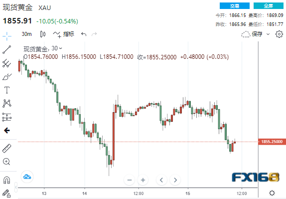 现货金自高位下跌逾17美元,刷新日低至1851.77美元/盎司低点,周一曾跌至5月17日以来的最低水平1843.99美元/盎司。