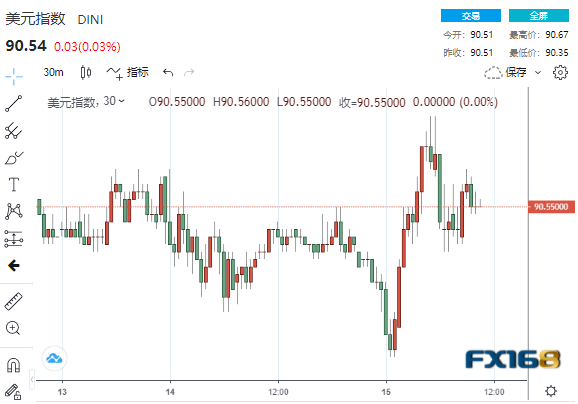 美市盘中,美元指数交投于90.50一线,日内稍早一度自日低90.35大幅拉升并刷新日高至90.67,随后自高位震荡回落。