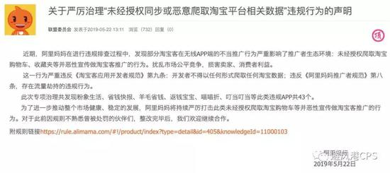 2019年5月,阿里妈妈在进行违规排查过程中,发现部分淘宝客在无线App端未经授权爬取淘宝购物车、收藏夹等并恶性宣传做淘宝客推广的行为。这一行为严重违反《淘宝客应用开发者规范》第九条:开发者不得以任何形式爬取任何淘宝数据;违反《阿里妈妈推广者规范》第八条,存在流量劫持的违规行为。