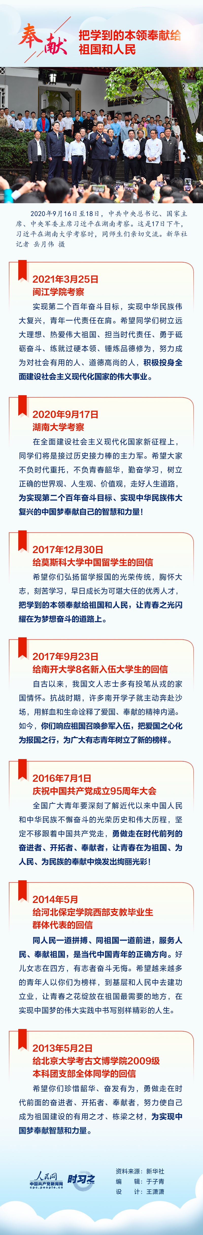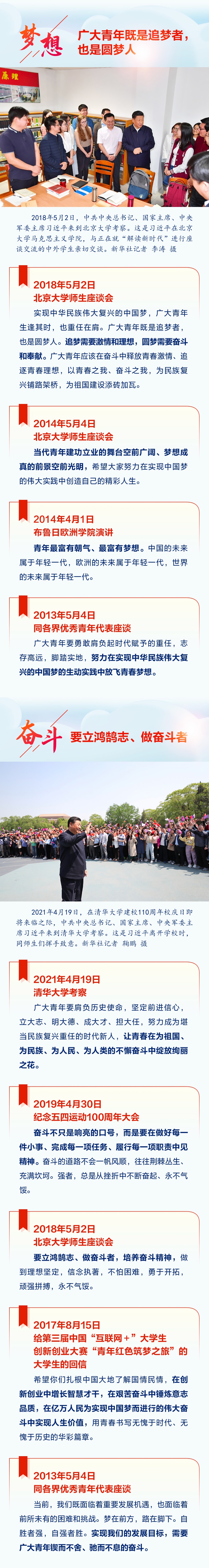 原标题:不负韶华 为梦想奋斗 习近平寄语青年