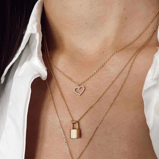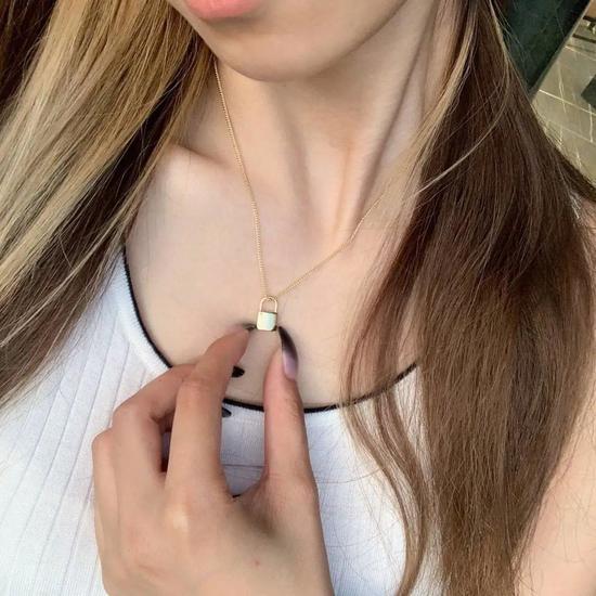 这条锁头吊坠项链非常实用,感觉它一年四季都能戴,尤其是在夏天的时候,V领、方领、一字领单独戴它都很好看。