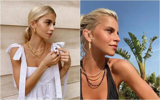 戴项链的效果肯定是最好的,既可以修饰脸型还能修饰锁骨,存在感极强,特别适合穿单薄衣服的夏天。