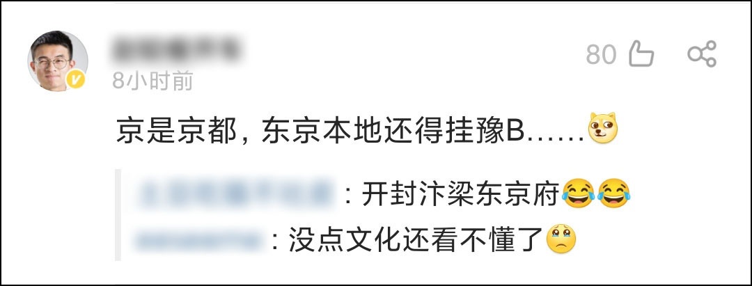 消息传到国内,微博网友开始就着“央妈”的北京车牌疯狂玩梗。“京牌进东京,毫无违和感”、“有什么问题吗?(狗头)”有网友说,确实“东京也是京啊……”