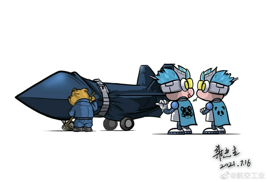 消息传出后,中国航空工业集团有限公司官微发布了一张内涵漫画。两个代表中航工业的卡通小人,分别穿着印有东北虎和四川熊猫图案的衣服,在围观这架还在被包裹得严严实实的飞机。