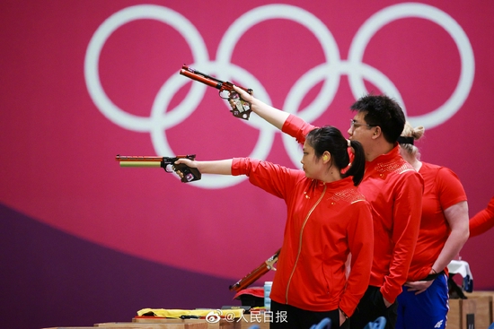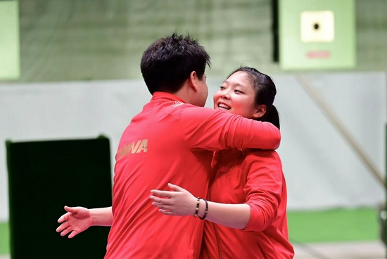 比赛中,姜冉馨/庞伟一度以0-4落后。最后两枪,姜冉馨连续打出10.7环,后来居上完成反超,最终以16-14击败对手夺冠。