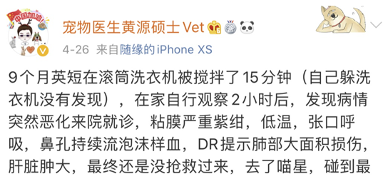 其实,活物跑进洗衣机后死亡的案例并不少。一位女士的英国短毛猫跑进洗衣机,被搅拌15分钟,就已经不省“猫”事,最终死亡。