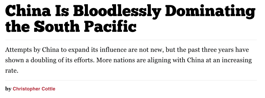 美国《国家利益》杂志8月16日文章,原题:中国兵不血刃地主导南太平洋