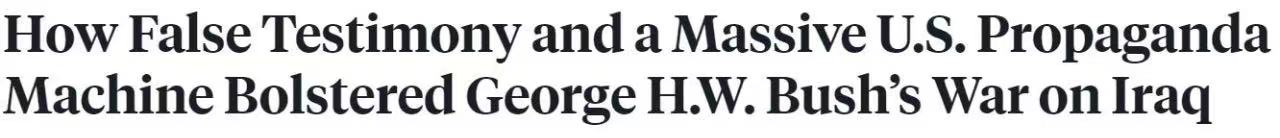 △美国OZY媒体公司网站文章《海湾战争中的弥天大谎》:促使美国公众和国会支持发动海湾战争的一个关键转折点是科威特女孩纳伊拉赫的可怕证词。问题是,纳伊拉赫的故事是虚构的。