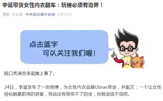 2021年2月26日中央政法委官方号长安剑就此事点名李诞。