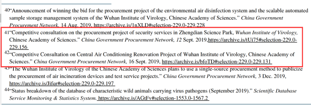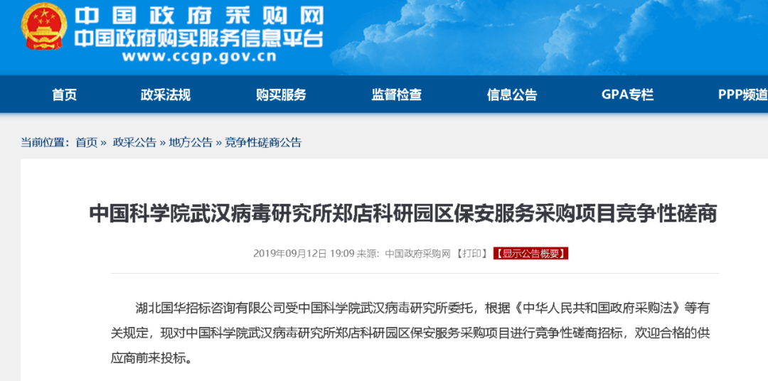 话说在今年8月初,美国国会众议院外交事务委员会的共和党人,为了将新冠疫情的源头栽赃给咱们中国的武汉病毒所,发布了一份所谓的“调查报告”,并从中国政府采购网上扒出了多份武汉病毒所在2019年9月时发布的项目采购文件作为“证据”,比如下图中这两个涉及中央空调改造项目和科研院区安保服务项目的。