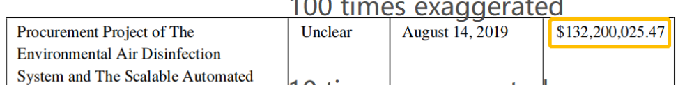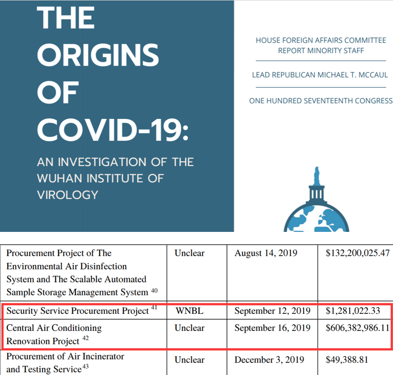 原来,在美国国会众议院外交事务委员会的报告中,武汉病毒所的安保服务项目和中央空调系统项目的预算金额,竟一下子从原本中文文本中的83万和392万,变成了128万美元(约合830万人民币)和6.06亿美元(约合39.2亿人民币),比原本中文文件里的金额暴增了10倍乃至1000倍之多!