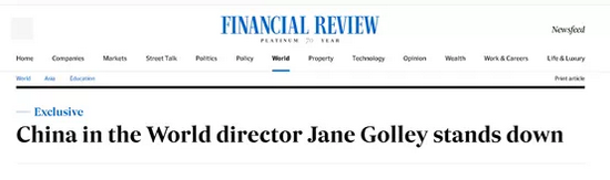 今天,来自澳大利亚媒体的报道就显示,她已经被迫辞去了澳大利亚国立大学“中华全球研究中心”的主任一职。
