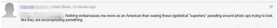“作为一个美国人,没有什么比看到这些自负的官员展示照片,试图让他们看起来正在完成某些事,更让我感到尴尬的了。”