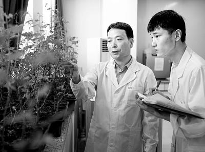 在宁夏大学食品与葡萄酒学院葡萄系的实验室内,教师(左)指导研究生开展试验。新华社发