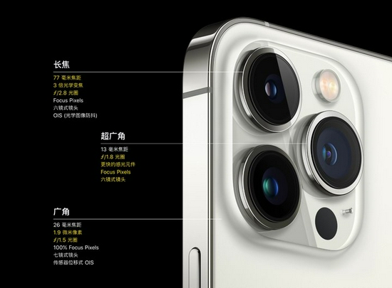 对比两代影像旗舰会发现,新一代 13 Pro 系列的镜头模组有了很大变化,根据苹果的介绍,得益于新镜头和新的传感器,超广角摄像头的进光量提升了 92%,广角摄像头进光量更是提升了 2.2 倍。