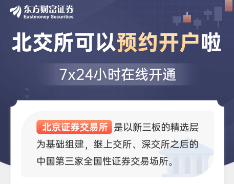 东方财富证券也支持7x24小时北交所在线开户,在相关详情页中,针对投资者教育,东方财富证券还介绍了个人开户要求、交易规则、北交所相关股票近期走势等。