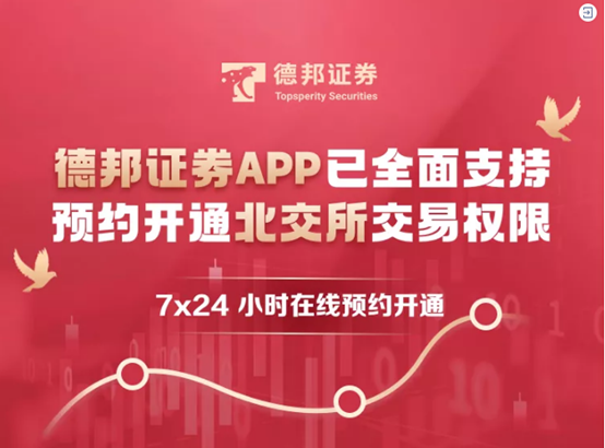 德邦证券相关业务功能也于9月19日上线,目前,德邦证券APP已开放北交所开户预约,接受7×24小时不间断办理。