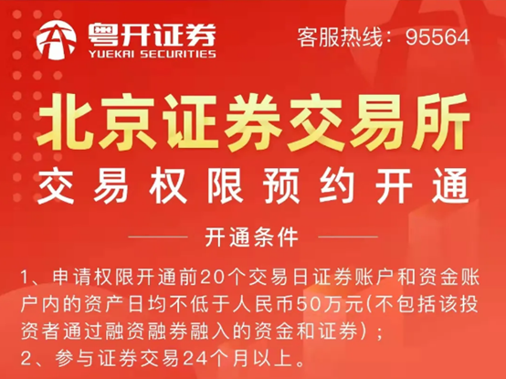 粤开证券APP也全面支持预约开通北交所交易权限,9月22日开市起,7x24小时可办理权限开通。同时,粤开证券也提醒投资者,预约不代表投资者能成功开通北交所合格投资者权限,需以实际开通时的情况为准。
