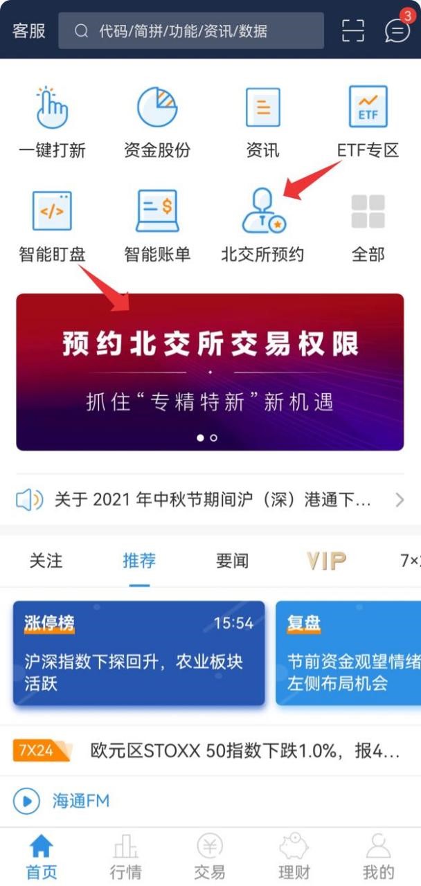18日凌晨,海通证券在e海通财APP中火速上线了“北交所预约”模块。工作人员将在北交所正式接受开户后,第一时间由专人通知客户办理开户或开通交易权限。