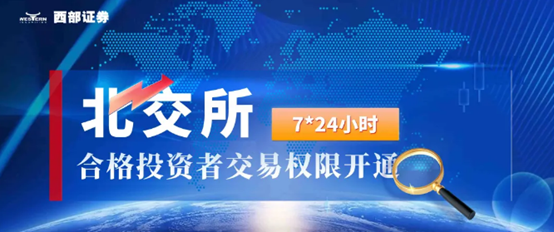 同期还有西部证券,也上线了7x24小时北交所合格投资者交易权限开通功能,投资者可通过信天游APP进行登记申请。