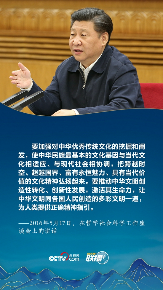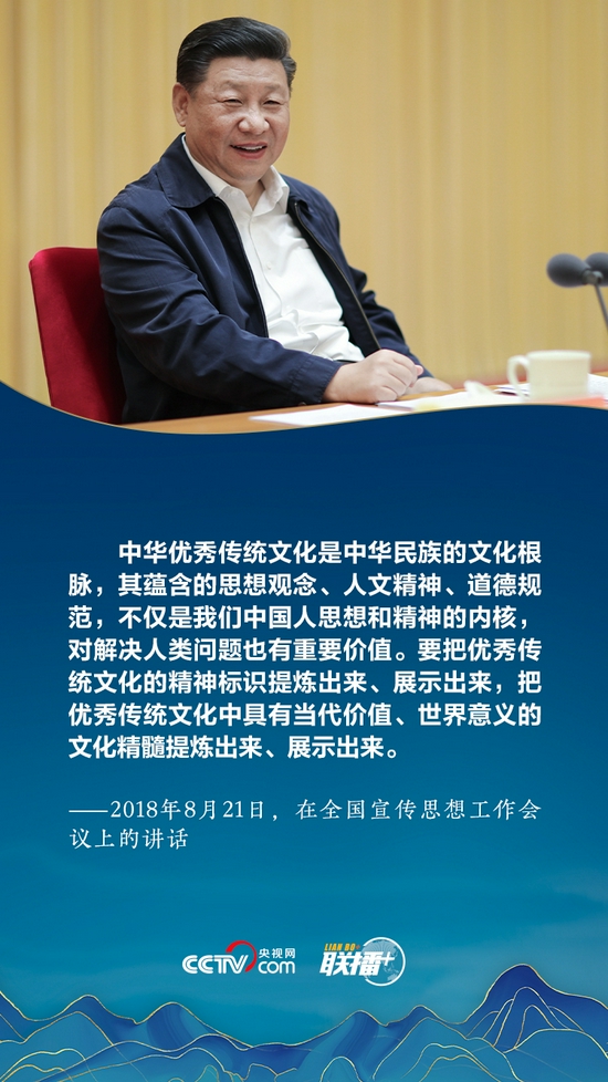 联播+“中华优秀传统文化是中华民族的精神命脉,是涵养社会主义核心价值观的重要源泉,也是我们在世界文化激荡中站稳脚跟的坚实根基。”