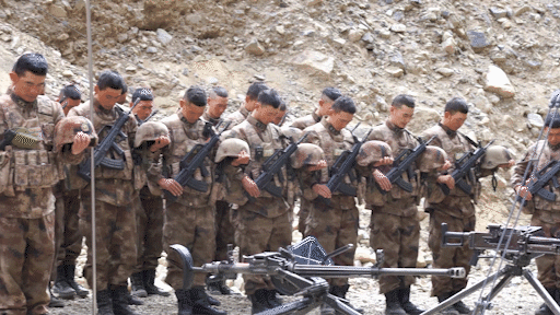 在“大好河山、寸土不让”的石壁下,他们缅怀牺牲的战友
