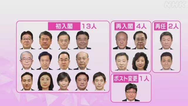 此外,茂木敏充、岸信夫将分别留任外务相与防卫大臣相,代理干事长萩生田光一将调任经济产业相。公明党副党首齐藤铁夫将担任国土交通相。总裁选举的竞争对手野田圣子则担任地方创生相。