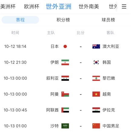 12强赛第四轮,将上演强强对决,伊朗战韩国,日本对阵澳大利亚↓