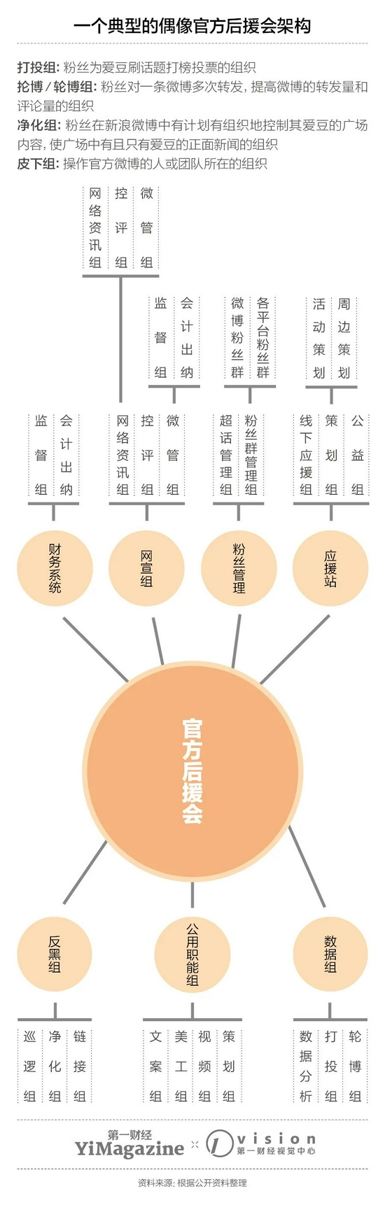 《第一财经》杂志在2020年11月刊的封面报道中详细描述了饭圈群体以及背后的产业链。简而言之,饭圈群体以及其核心组织“应援会”,是此前整个偶像产业的动力源。