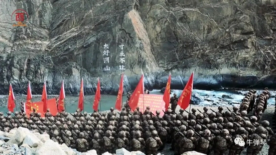 当时的冲突,就在“大好河山、寸土不让”8个大字之下,这不也更说明,去年的冲突,完全是印军越界,蓄意挑衅。