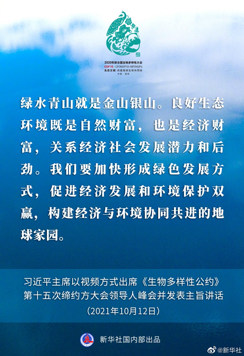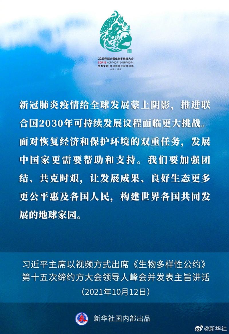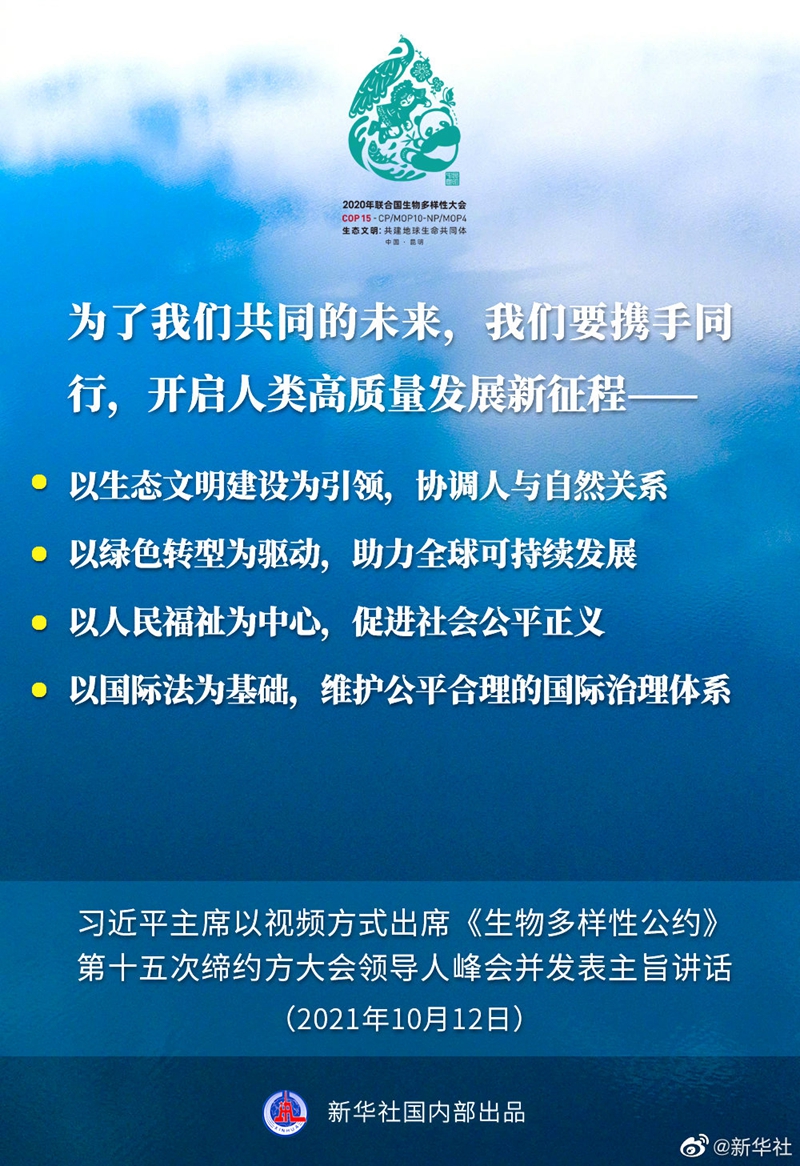 原标题:习近平在《生物多样性公约》第十五次缔约方大会领导人峰会上的主旨讲话速览