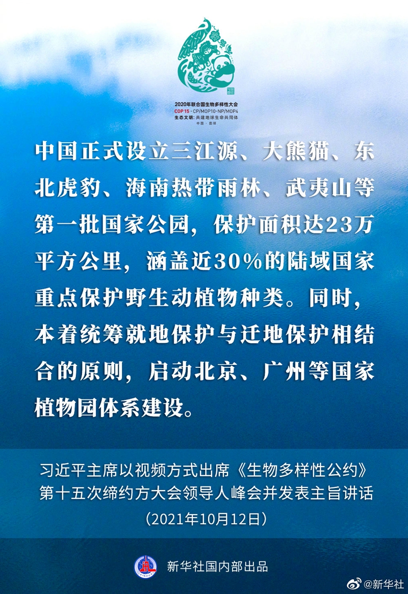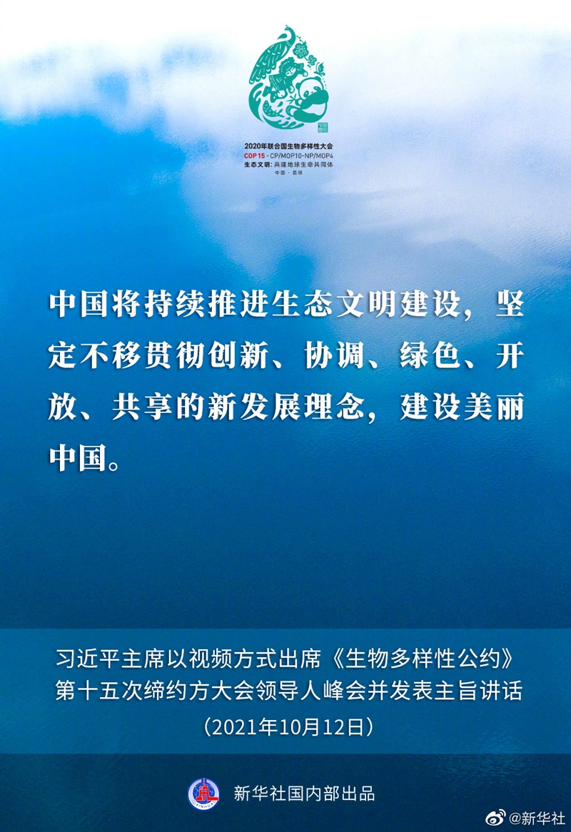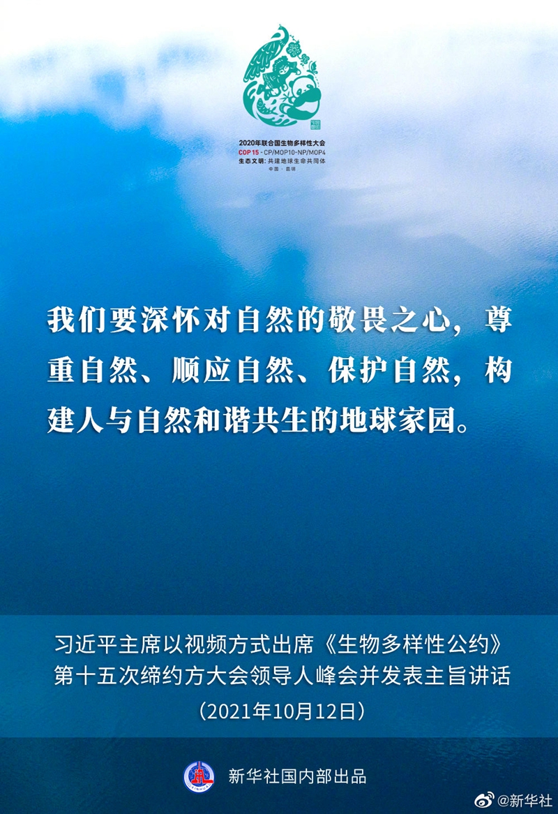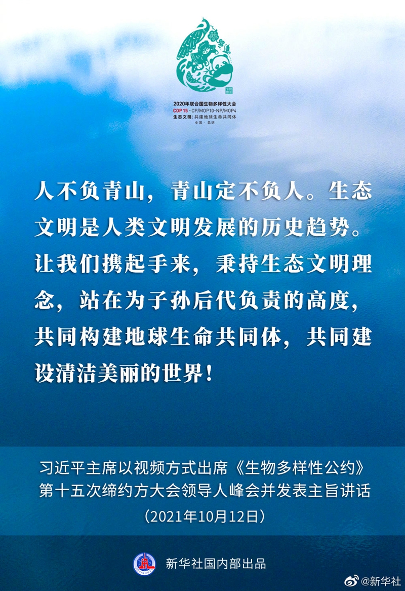 原标题:习近平在《生物多样性公约》第十五次缔约方大会领导人峰会上的主旨讲话速览