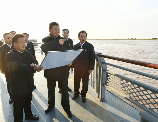 10月20日,习近平总书记来到山东省考察。当天下午,他来到黄河入海口码头、黄河三角洲生态监测中心、黄河三角洲国家级自然保护区,实地察看黄河河道水情和黄河三角洲湿地生态环境,了解黄河流域生态保护和高质量发展等情况。