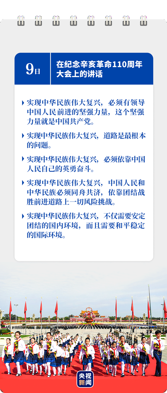 在10月9日的纪念大会上,习近平总结了辛亥革命110年来的5点历史启示——