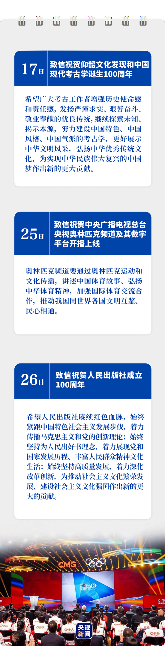 10月25日,中央广播电视总台央视奥林匹克频道及其数字平台开播上线仪式举行。习近平发来贺信,表示热烈祝贺并提出殷切期望——