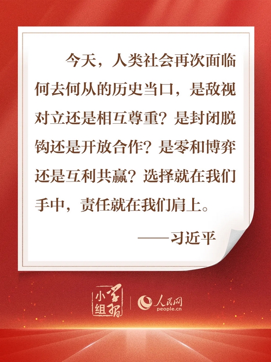 “是敌视对立还是相互尊重?是封闭脱钩还是开放合作?是零和博弈还是互利共赢?”