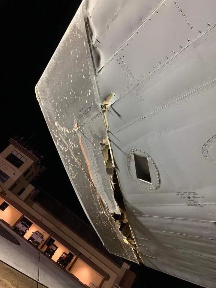美军B-52H轰炸机右翼受损照网上疯传,美国空军基地证实发生事故