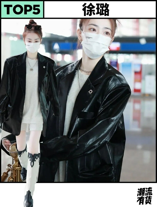 浑身只有两个颜色,靴子成功的与身上颜色撞色呼应,肯定是花费了不小的心思的,发型也与整体很和谐!