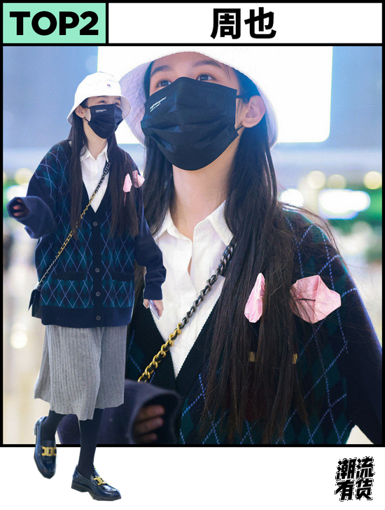 这身穿搭应该是不少女生现实生活中会喜欢的穿搭。针织衫相互叠搭,乐福鞋和小风琴包也在黑色与金色相呼应。