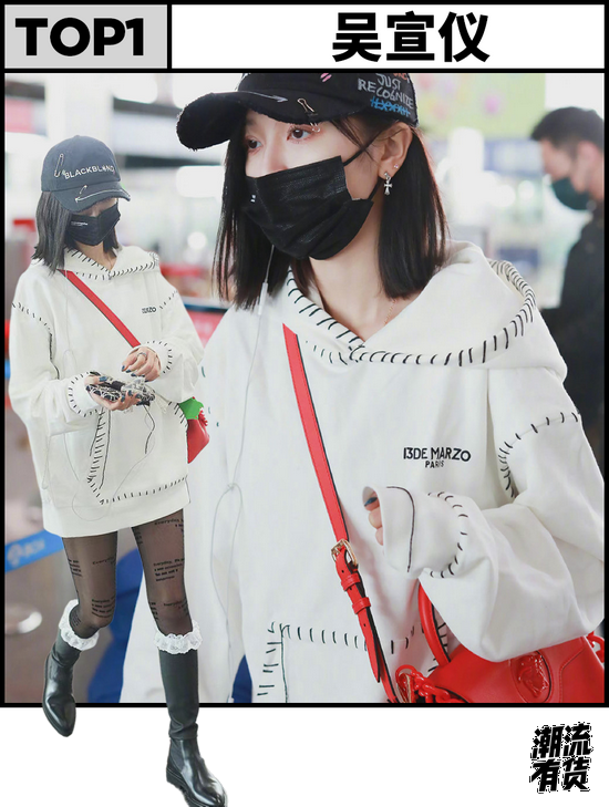 吴宣仪真的喜欢从头到脚搞重点啊,脚上的黑丝更是莫名其妙的,如果把丝袜和蕾丝去掉,应该会简洁不少。