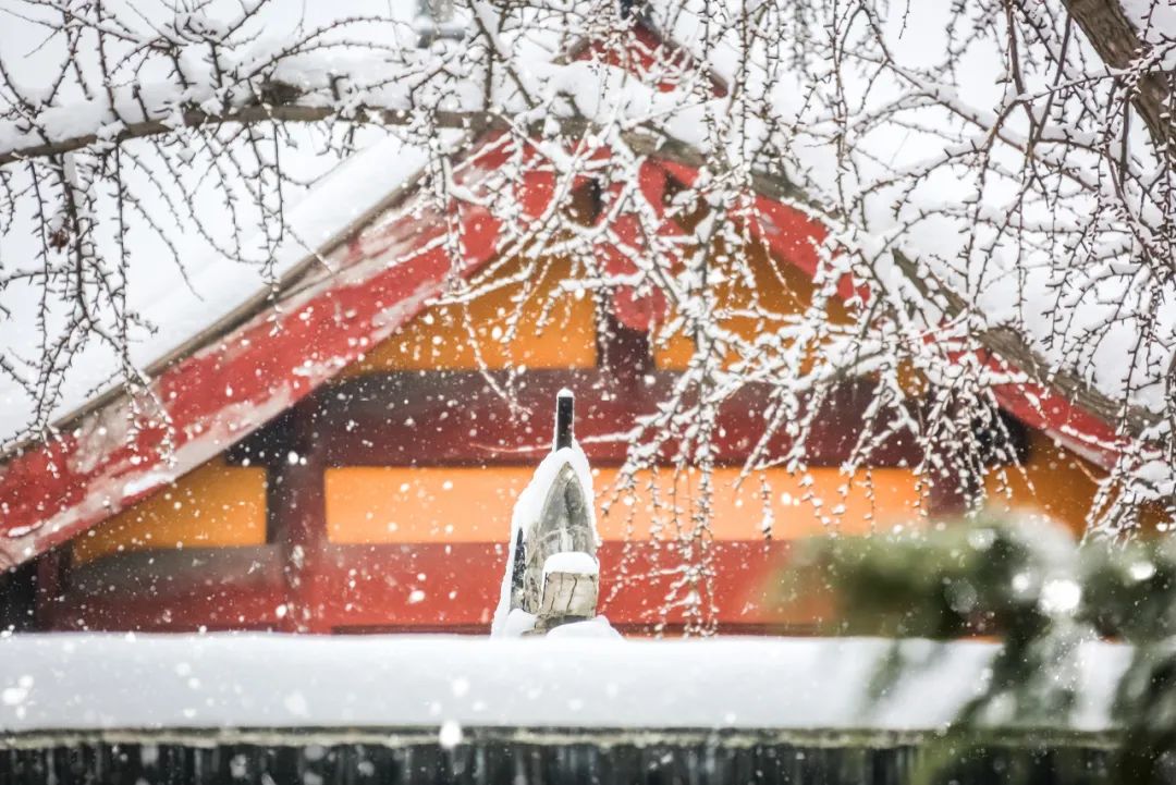 朱红色的城墙依旧将雪映衬的格外洁白。