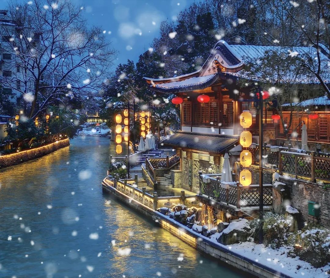 来到这里,飞舞的雪花仿佛可以梦回广陵;千百年来,无数文人墨客在此流连忘返,吟诗作画;一种独属于文人的气质仿佛和这座城市融为了一体。此时最适合做的事便是围炉烤火,煮雪饮茶, 闲话人生了。