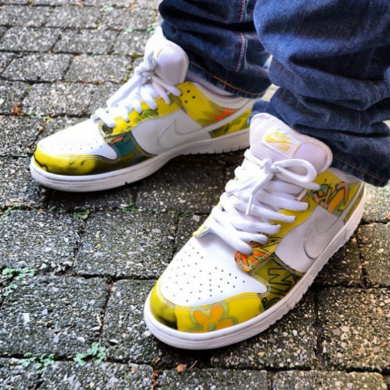 传奇嘻哈乐队De La Soul,他们独特的音乐风格,古怪的歌词,极大的推动了另类嘻哈文化流派的演变,而这两双高低帮DUNK SB正是他们嘻哈风格的完美体现。