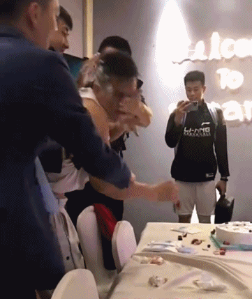 现场视频曝光,郭艾伦切完蛋糕之后害怕被整,直接选择了逃离现场。没想到,辽宁主帅杨鸣直接将他拉了回来,还指使数名球员往郭艾伦脸上抹蛋糕。