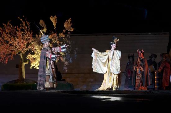 它以拉萨自然山川为背景,在璀璨星空下,再现大唐文成公主与吐蕃王松赞干布和亲的历史画面,十分震撼。