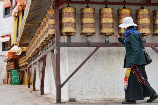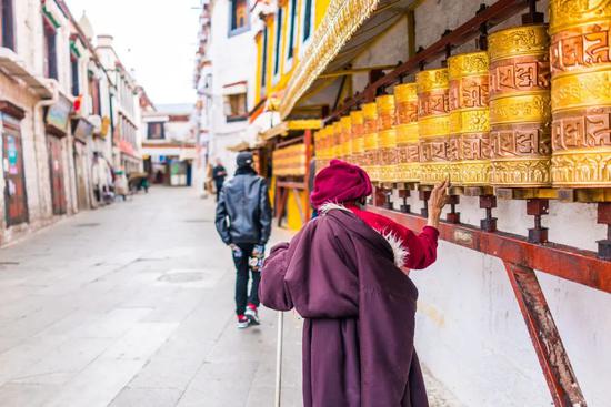 这一圈一圈的转经,就如一直顺时针旋转的转经筒一般,念经的人们把自己的祈祷,一圈一圈地刻入无边的时空。