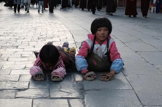 站在大昭寺门前,满耳都是此起彼伏的“刷刷”扑地声。