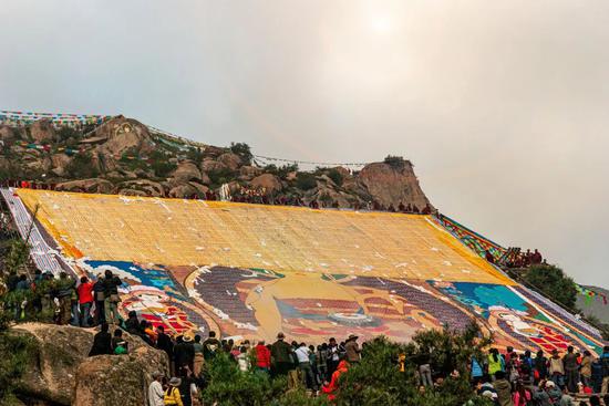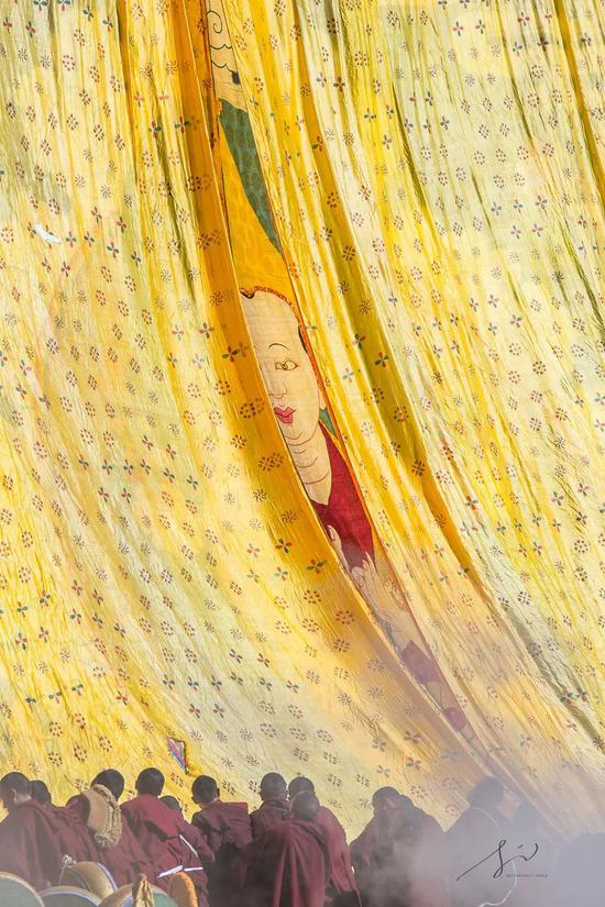 每年藏历六月三十日雪顿节,在哲蚌寺后面的根培乌孜山坡上张挂巨型释迦牟尼佛像,这是哲蚌寺一年中最盛大的节日。