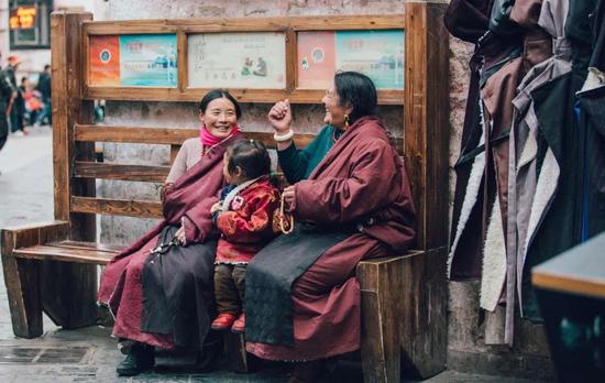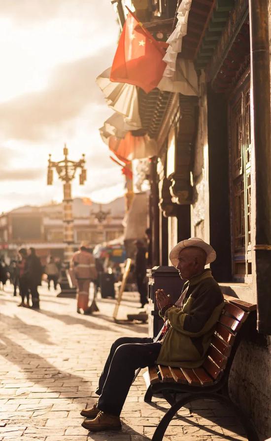他们在诵经声中,在甜茶馆里,过着只属于他们自己的闲适生活。大昭寺广场晒太阳,或闲坐着发呆,或看游人信徒来了又走。