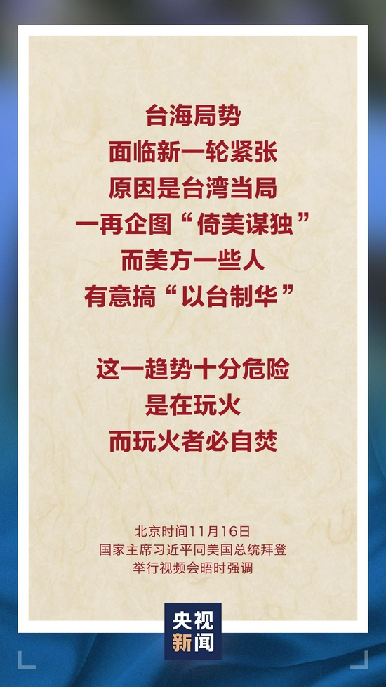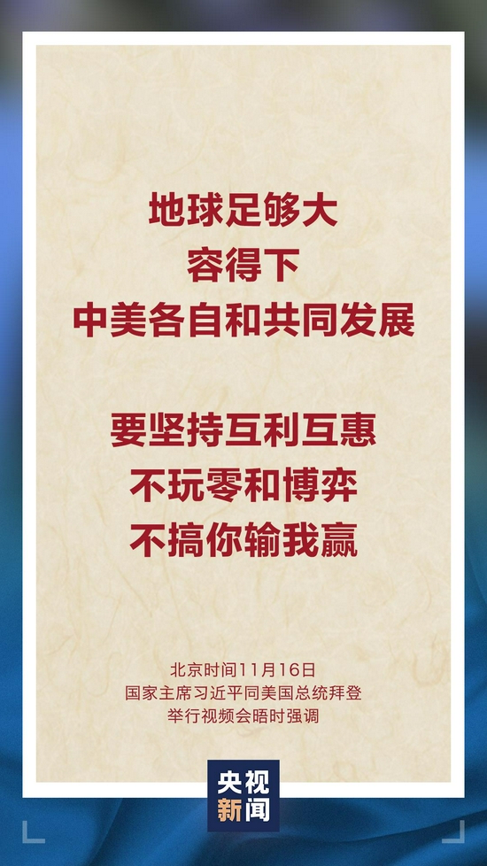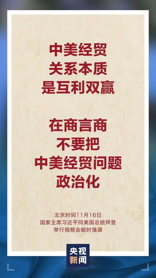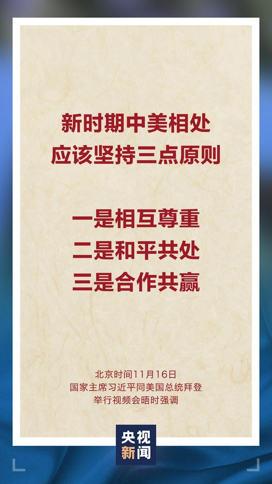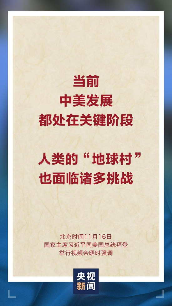 11月16日上午,国家主席习近平同美国总统拜登举行视频会晤。双方就事关中美关系发展的战略性、全局性、根本性问题以及共同关心的重要问题进行了充分、深入的沟通和交流。